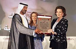 وأضاف سموه نعم إن هذا الاختيار، جاء في محله ، فانجازات السيدة مبارك المتعددة ، تشهد لها وتجعل منها نموذجا نسائيا عربيا جديرا ان يحتذى. مؤكدا سموه أن فوزها بالجائزة، هو فوز للمرأة ، في الوطن العربي وتقدير لدورها الأساسي في مشاركة أخيها الرجل في عملية التنمية والنهوض بمجتمعاتنا.