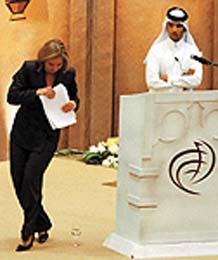 شهدت العاصمة القطرية الدوحة أمس اجتماعين نادرين منفصلين بين وزيرة الخارجية الإسرائيلية تسيبي ليفني، مع كل من أمير قطر الشيخ حمد بن خليفة آل ثاني، ووزير الخارجية العماني معالي يوسف بن علوي الذي قال عقب الاجتماع إنه لا يتفق مع آراء الإسرائيليين بشأن تطورات عملية السلام، مستبعداً بالتالي إعادة فتح المكتب التجاري الإسرائيلي في مسقط قبل الاتفاق على الدولة الفلسطينية.