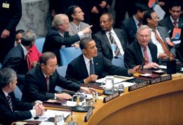 وقال أوباما عقب تبني القرار أن العام المقبل سيكون حاسماً بشأن نزع الأسلحة النووية وتقليصها. وعلى هامش اجتماع مجلس الأمن وقع 150 وزير خارجية على إعلان يدعو إلى سرعة تطبيق معاهدة الحظر الشامل للتجارب النووية. وهذه هي المرة الخامسة التي يجتمع فيها مجلس الأمن على مستوى رؤساء الدول منذ إنشائه عام 1946، والأولى التي يترأس فيها رئيس أميركي اجتماعا للمجلس.وفي السياق اتفق الرئيسان الأميركي، والروسي ديمتري مدفيديف على مواصلة الضغط على إيران لإنهاء أنشطتها النووية.