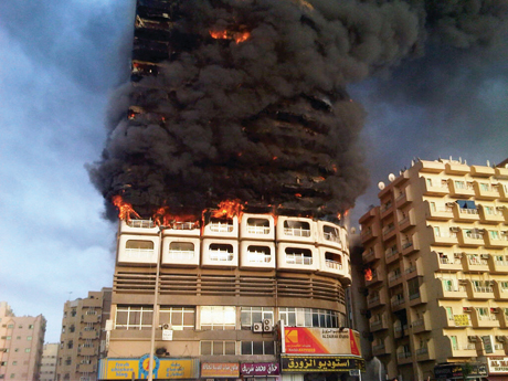 أدى حريق ضخم إلى التهام بناية بأكملها، مكونة من 12 طابقاً في منطقة البطينة في الشارقة، على شارع العروبة المتجه إلى إمارة عجمان أمس، حيث قامت فرق من الدفاع المدني بإخلاء المبنى قبل البدء في عملية الإطفاء، وتم إنقاذ 6 أشخاص تلقوا العلاج بعد نقلهم إلى مستشفيات الشارقة.