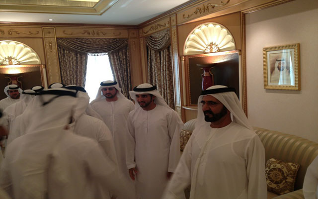 إستقبل صاحب السمو الشيخ محمد بن راشد آل مكتوم نائب رئيس الدولة رئيس مجلس الوزراء حاكم دبي اليوم جموع المهنئين لسموه بمناسبة فوزه ببطولة العالم للقدرة 2012 التي أقيمت في أوستن بارك بانجلترا وفوز فريق الامارات بذهبية الفرق وذلك بقصر زعبيل بدبي بحضور سمو الشيخ حمدان بن محمد بن راشد آل مكتوم ولي عهد دبي و سمو الشيخ مكتوم بن محمد بن راشد آل مكتوم نائب حاكم دبي .