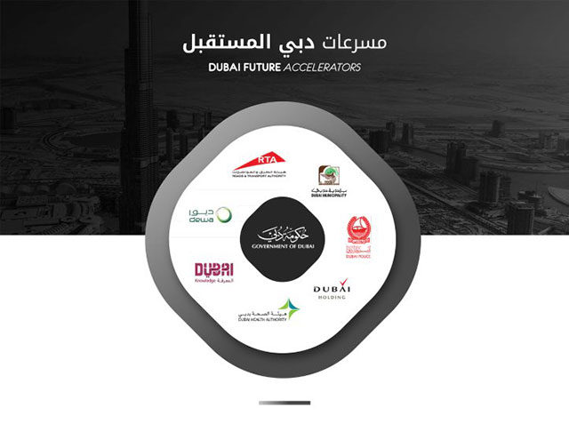 وتتمحور مبادرة مسرعات المستقبل حول سلسلة من التحديات المستقبلية، التي تحددها سبع جهات حكومية وشبه حكومية مشاركة وهي هيئة الطرق والمواصلات، وهيئة كهرباء ومياه دبي، وشرطة دبي، وبلدية دبي، وهيئة الصحة في دبي، هيئة المعرفة والتنمية البشريةـ ودبي القابضة، والتي ستتتعاون عبر الشراكة مع الشركات العالمية لإيجاد الحلول لها وابتكار الأفكار المستقبلية ، مما يجعل مسرعات دبي المستقبل الأكبر من نوعها على مستوى العالم من ناحية عدد الجهات الحكومية وقطاعات التركيز.