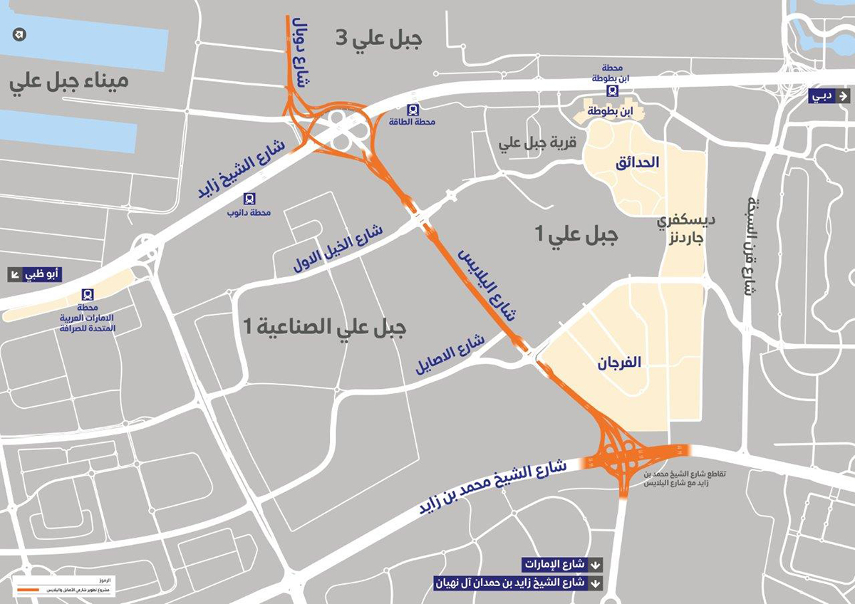 افتتحت هيئة الطرق والمواصلات اليوم السبت، مشروع تطوير محوري شارع اليلايس والاصايل، حيث يسهم شارع اليلايس في تعزيز الربط بين شارع الشيخ زايد وشارعي الشيخ محمد بن زايد والإمارات، فيما يعد شارع الأصايل محوراً موازياً لشارع الخيل وشارع اﻟﺸﻴﺦ ﻣﺤﻤﺪ ﺑﻦ زاﻳﺪ وشارع الشيخ زايد بن حمدان آل نهيان وشارع الامارات، ويسهم المشروع ﻓﻲ دﻋﻢ اﻟﺤﺮﻛﺔ اﻻﻗﺘﺼﺎدﻳﺔ، وتوفير مداخل ومخارج إضافية للمشاريع التطويرية في المنطقة مثل مشروع الفرجان وديسكفري جاردنز ومشروع جبل علي التطويري.