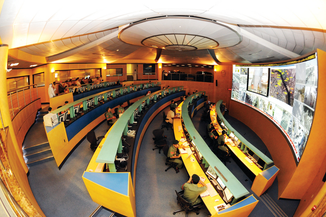 وأكد العميد عمر عبد العزيز الشامسي مدير غرفة القيادة والسيطرة بالادارة العامة للعمليات بشرطة دبي ان حجم شاشة غرفة العمليات يبلغ ما يزيد على 40 متراً مربعاً، وتعتبر الأكبر في المنطقة وتعمل بشكل الكتروني، وتنقل عبر عدسات الكاميرات المثبتة في كافة شوارع دبي، صوراً حية لكافة المناطق الحيوية.