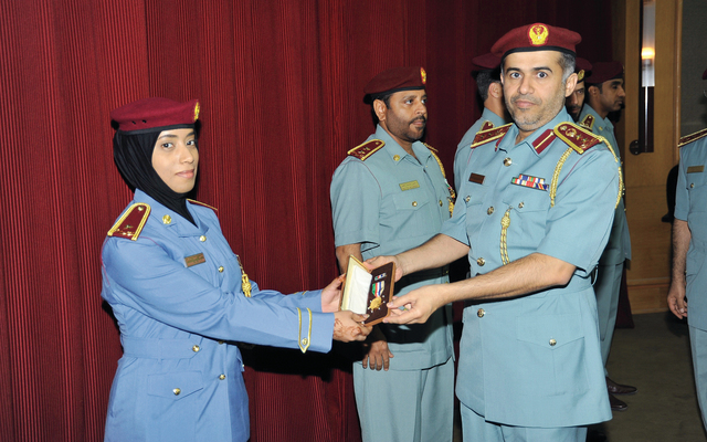 قلد العقيد خميس مصبح المرر، القائم بأعمال مدير عام شؤون الأمن والمنافذ في شرطة أبوظبي، أول من أمس ، عدداً من الضباط أوسمة وميداليات الخدمة الطويلة الممتازة، والخدمة المخلصة بمقتضى القرار الوزاري رقم 488 لسنة 2011 . وأكد المرر حرص القيادة الشرطية على تنمية وتحفيز الكادر البشري، بما يمكنه من أداء عمله بكفاءة، مشيراً إلى أن تطوير الإمكانات الشخصية مطلب ضروري ومهم، وأن مواصلة البذل والعطاء، والعمل على تطوير القدرات وصقلها بالتدريب والاطلاع على العلوم والتجارب الحديثة في مجال العمل الشرطي والأمني.