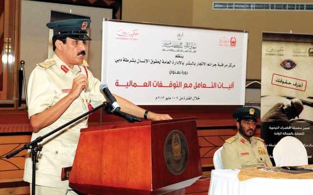 قال اللواء خميس مطر المزينة، نائب القائد العام لشرطة دبي، في افتتاح دورة (آلية التعامل مع التوقفات العمالية) التي ينظمها مركز مراقبة الاتجار بالبشر في الإدارة العامة لحقوق الإنسان في شرطة دبي بنادي الضباط بالقرهود، إن القيادة العامة لشرطة دبي عمدت إلى وضع استراتيجية لمعالجة التوقفات العمالية تركز بشكل كبير على الجانب الوقائي في حل المشكلات.
