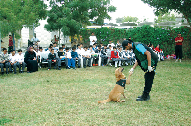 زار مؤخراً وفد طلابي من مدرسة وروضة المروج الانجليزية الخاصة في إمارة الشارقة والذين بلغ عددهم 86 طالباً وطالبة برفقة 6 مشرفات قسم التفتيش الامني ( k9 ) في شرطة الشارقة حيث توزعت الزيارة الميدانية على يومي الثلاثاء والاربعاء وذلك بهدف الإطلاع على طبيعة العمل ومشاهدة عروض الكلاب البوليسية لاثراء معلوماتهم .