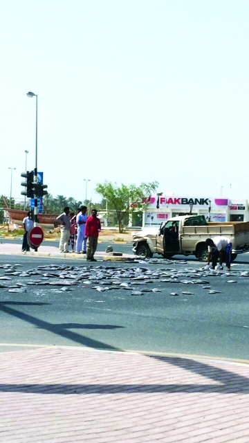 وأكدت مصادر في شرطة رأس الخيمة أنه ورد بلاغ إلى غرفة العمليات صباح أمس، يفيد بوقوع حادث اصطدام بين مركبتين بمنطقة الرمس، وهو الثاني خلال 24 ساعة، وانتقلت على إثره دوريات الشرطة والإسعاف إلى الموقع للمعاينة الأولية وتخطيط الحادث، واتضح أن سببه ناتج عن تجاوز إحدى المركبات للإشارة الضوئية، ما أدى إلى التصادم وتناثر حمولة المركبة من الأسماك على أرضية الشارع خلال توجهها إلى سوق المعيريض للبيع.
