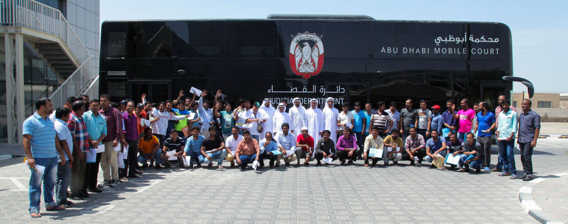 تمكنت محكمة أبوظبي العمالية، بالتعاون مع وزارة الموارد البشرية والتوطين ، من إنهاء نزاع عمالي جماعي لـ 781 عاملا ً، وذلك من خلال الانتقال إلى موقع سكن العمال عبر المحكمة المتنقلة، واتخاذ جميع الإجراءات القانونية من تقييد المطالبات ونظر القضايا وإصدار أحكام قضائية بمستحقات كل عامل على حدة مع النفاذ المعجل، وتسليم المستحقات من دون الحاجة إلى مراجعة مقر المحكمة العمالية، كما تم عمل الإجراءات اللازمة لنقل إقامات العمال الراغبين بذلك إلى شركة أخرى، وتوفير تذاكر سفر للراغبين بالعودة إلى بلادهم.