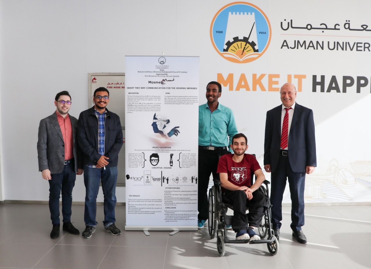 والمشروعان الفائزان من جامعة عجمان هما : "مُسمِع" نظام جَسْر هوة التواصل بين الصم ومحدثيهم، وهو خاص بضِعاف السمع والنطق ممن يجدون صعوبة بالتواصل مع أقرانهم، إذ يستخدم أحدهما كلاماً منطوقاً والآخر لغة إشارة، مما يُجبر هذه الفئة على الاستعانة بوسيط، وهنا تولدت فكرة مشروع مُسْمِع بعد تفكير وتمحيص وتخطيط، لتمكين "أصحاب الهمم" من الصم والبكم من التخاطب، دون الحاجة لاستخدام نظارة وأساور ذكية يرتديها الأصم، فتقوم النظارة بتصيير الكلام المنطوق نصاً يراه عليها، فيفهمَ محدثَه، وحالما استعمل الأصم لغة الإشارة، ستحوّل الأساورُ - التي يرتديها - تلك الإشارة إلى كلام مسموع، تفهمُه الجُموع، مكوناً جسراً تواصلياً بينهما.