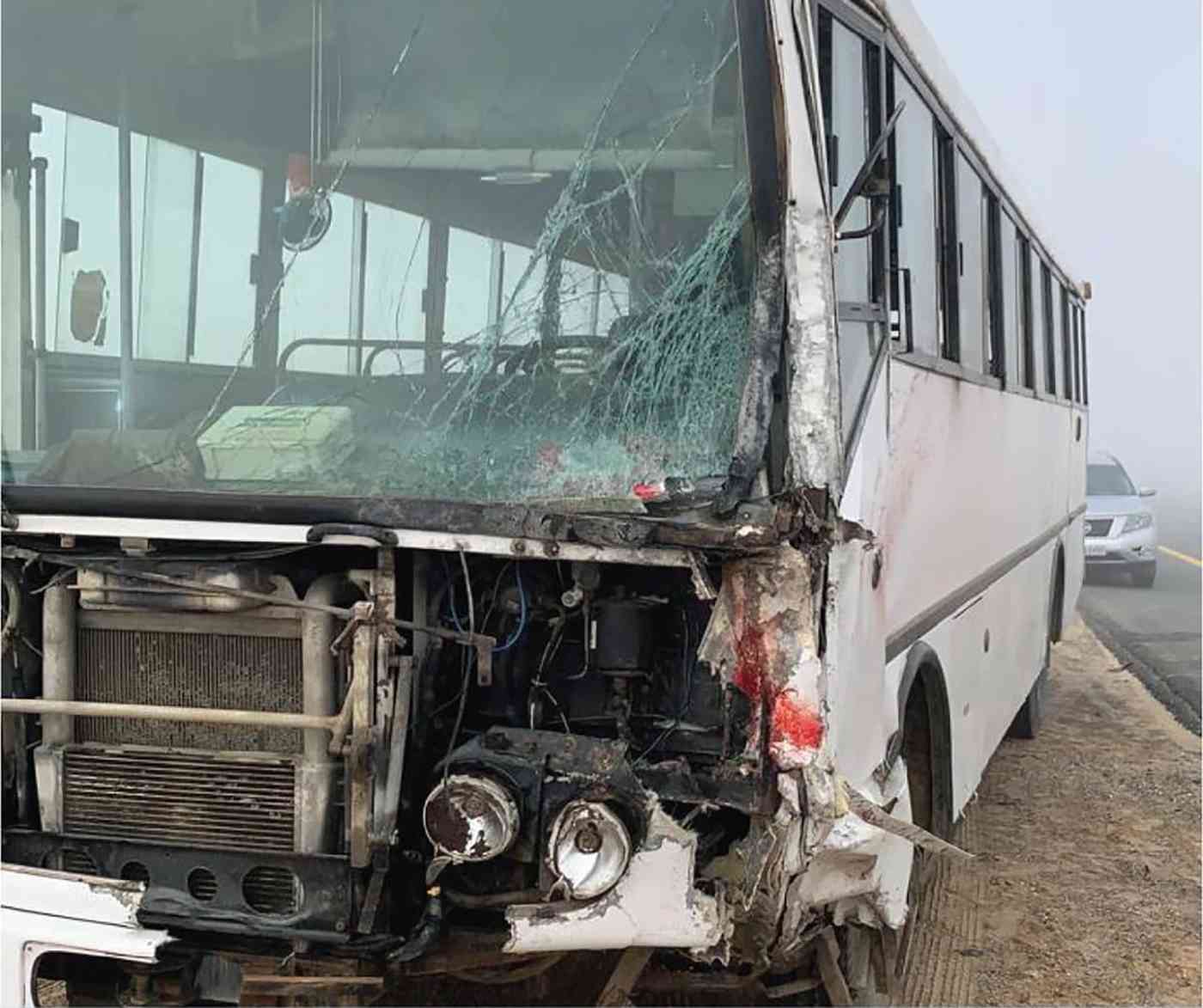 توفي 3 ركاب من الجنسية الآسيوية وأصيب شخصان بإصابات صنفت بالمتوسطة في حادث مروري بين حافلتين كبيرة وصغيرة على طريق الشاحنات "سيح شعيب باتجاه الفاية" .