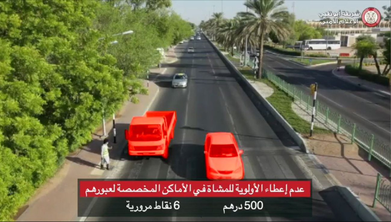 دعت القيادة العامة لشرطة أبوظبي السائقين إلى الالتزام بإعطاء أولوية للمشاة في الأماكن المخصصة لعبورها.