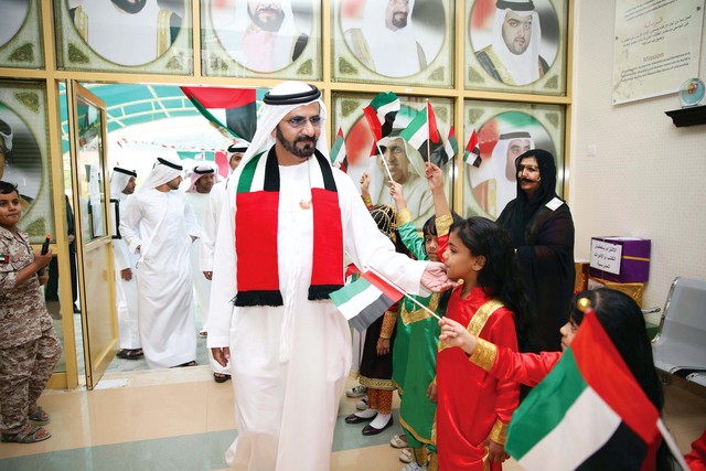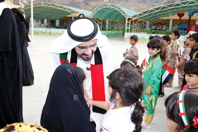 حرص صاحب السمو الشيخ محمد بن راشد آل مكتوم نائب رئيس الدولة رئيس مجلس الوزراء حاكم دبي "رعاه الله" على مشاركة بناته وأبنائه الطلبة فرحتهم باليوم الوطني الحادي والأربعين المجيد في عدد من مدارس المناطق الشمالية.