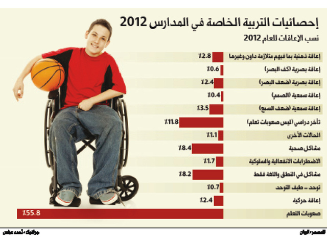 واضافت المري، أنه تم إصدار مجموعة من القرارات الوزارية والإدارية الخاصة بتنظيم قبول وتسجيل وتعليم الطلبة من ذوي الاحتياجات الخاصة، وعقد شراكات مع الجهات المعنية في المجتمع لتقديم خدمات للطلبة من ذوي الإعاقة، و تهيئة البيئة المدرسية من حيث توفير المصاعد والمنحدرات ودورات المياه الخاصة بذوي الاعاقة الحركية: