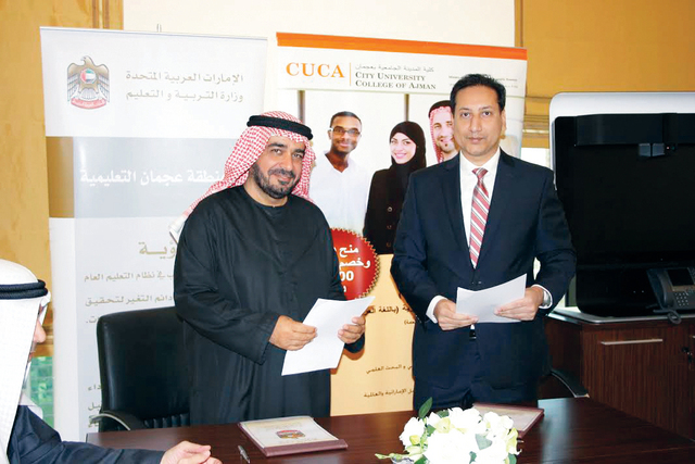 وقع علي حسن مدير منطقة عجمان التعليمية مذكرة تفاهم مع الدكتور عمران خان المدير التنفيذي لكلية المدينة الجامعية.