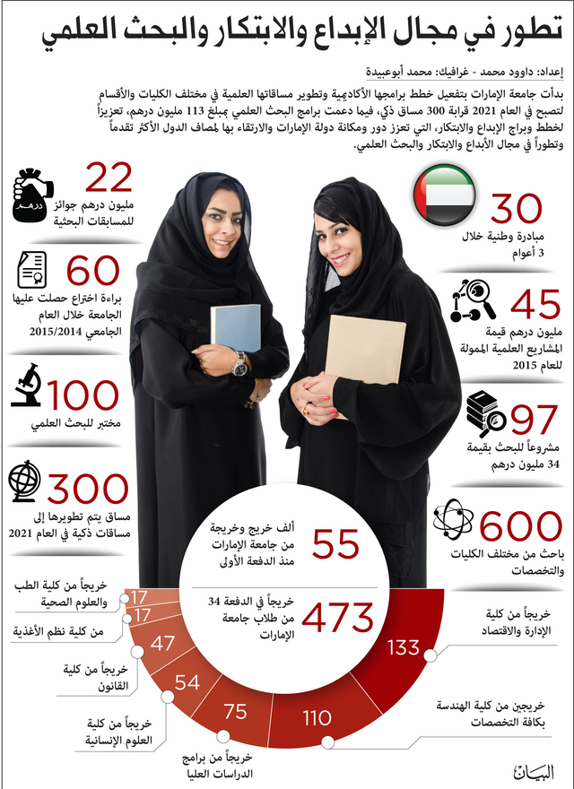 يأتي ذلك، في ظل التوجهات الرسمية للحكومة الرشيدة، بأهمية التركيز خلال المرحلة القادمة على الإبداع والابتكار في كافة الجوانب الحياتية والمشاريع التنموية، التي تشهدها الدولة في كافة المجالات، وجامعة الإمارات، باتت معنية بشكل أكثر بتطوير برامجها ومساقاتها العلمية في كافة التخصصات الأكاديمية، وفق حاجة متطلبات سوق العمل، لترجمة تلك التوجهات.