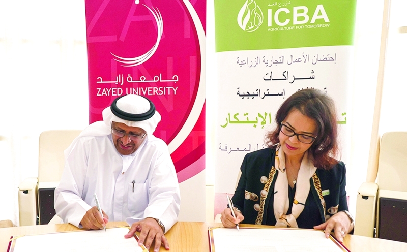 وقَّع كل من المركز الدولي للزراعة الملحية وجامعة زايد مذكرة تفاهم حول تعزيز التعاون في مجالات البحوث والتدريب، وذلك في مقر المركز بدبي.