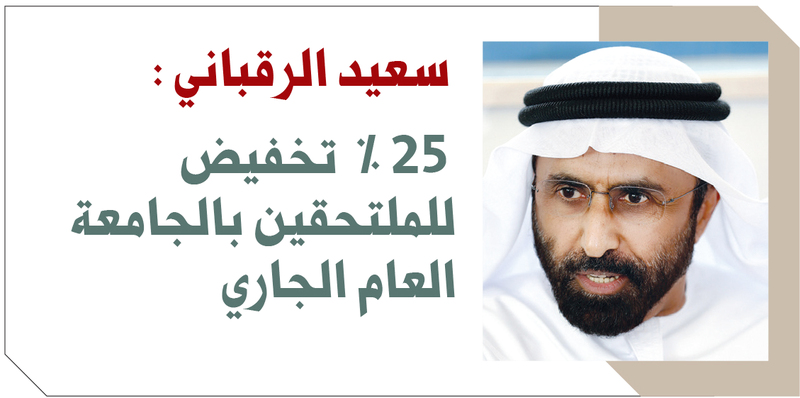 وكشف الرقباني رئيس مجلس الأمناء عن تقديم الجامعة منحة عامة لطلبة الثانوية العامة والماجستير، بمنح تخفيض يصل إلى 25% لكل الملتحقين بالجامعة في الفصلين الدراسيين الأول والثاني للعام الدراسي 2019 ـ 2020، وذلك لتوفير حافز معنوي، وظروف تعليمية تحفيزية تساهم في تحقيق مستويات عالية من التميز في أداء القطاع التعليمي في جامعة الفجيرة، ونشر مفاهيم الإبداع والتميز والجودة.
