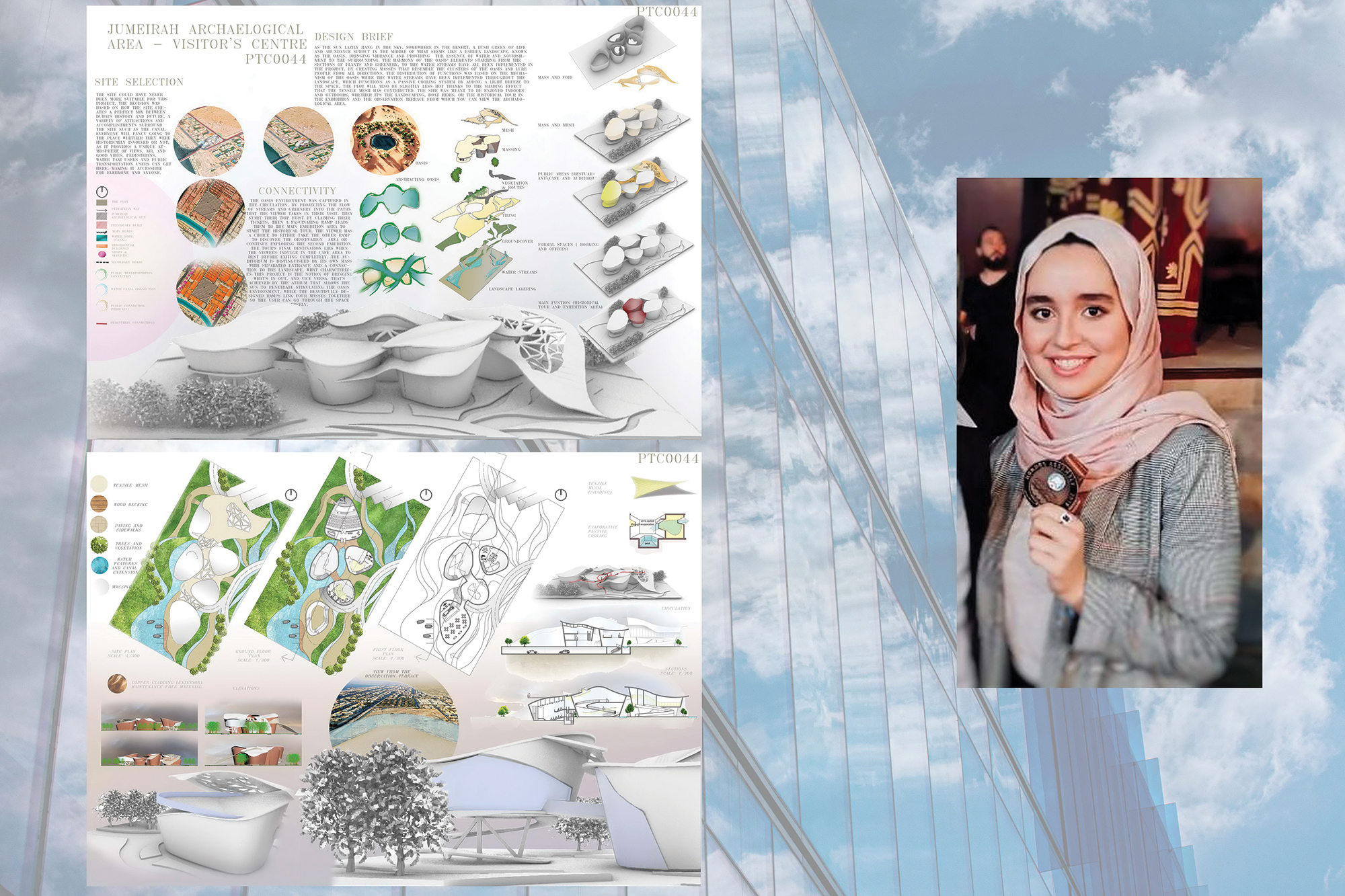 وتمكنت الطالبات من تحقيق متطلبات المشروع، وتوفير حلول مختلفة للتحديات المتعلقة بالتصميم بطرق مبتكرة وحديثة. حيث قامت الطالبة زُها حسيني، الحاصلة على المركز الأول في المسابقة، بتوظيف الأراضي المحيطة بالمنطقة الأثرية في الجميرا، وكان هذا اختياراً موفقاً لم يسبق أن قام به الطلبة المشاركون، ما أثار إعجاب لجنة التحكيم في المسابقة.