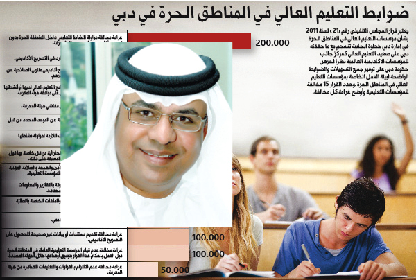 وقال في حوار مع "البيان" إن دبي مركز جاذب للاستثمار في التعليم نظراً للتسهيلات والمقومات التي تمتلكها الإمارة التي تضم أكبر عدد فروع للجامعات الدولية في المناطق الحرة على مستوى العالم ، مشيراً إلى أن قرار المجلس التنفيذي رقم "21" لسنة 2011 يعتبر خطوة إيجابية تتوافق مع الإمكانيات التي حققتها دبي على صعيد التعليم العالي، الذي حدد الرسوم والمخالفات للمؤسسات التعليمية في المناطق الحرة .