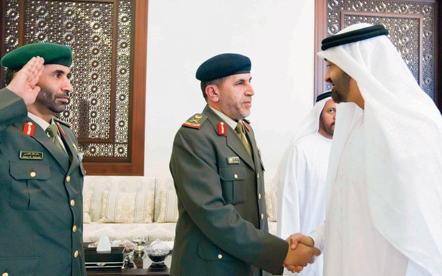 جاء ذلك خلال استقبال سموه وفدا يضم 12 من القادة السابقين لكلية زايد الثاني العسكرية الذين تعاقبوا على تولي قيادة الكلية منذ انشائها عام 1972، ضم الوفد خمسة قادة ضباط من المملكة الأردنية الهاشمية الشقيقة ممن استعانت بهم الكلية في بداياتها اضافة الى سبعة قادة ضباط من ابناء الوطن، يرافقهم الفريق الركن حمد محمد ثاني الرميثي رئيس أركان القوات المسلحة واللواء ركن سالم هلال سرور الكعبي قائد كلية زايد الثاني العسكرية، وذلك بمناسبة احتفالات الكلية بمرور أربعين عاما على تأسيسها.