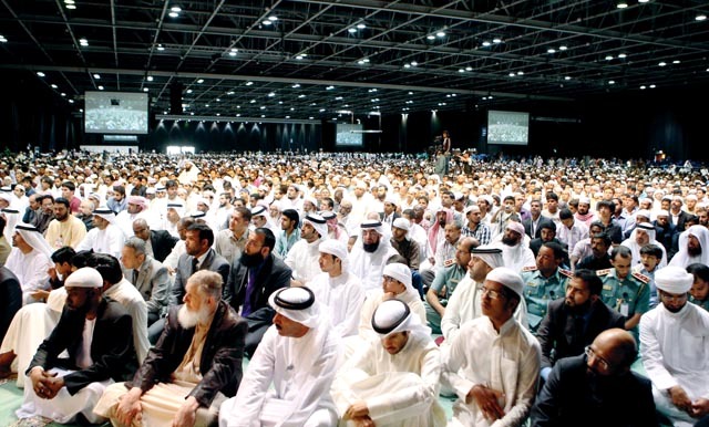 تحت رعاية صاحب السمو الشيخ محمد بن راشد آل مكتوم نائب رئيس الدولة رئيس مجلس الوزراء حاكم دبي رعاه الله، شهد مركز دبي التجاري العالمي ظهر أمس، وضمن فعاليات اليوم الثاني لمؤتمر دبي العالمي للسلام جموعاً حاشدة بلغ عددها أكثر من 60 ألف شخص أدوا صلاة الجمعة خلف الداعية الكويتي الشيخ مشاري راشد العفاسي، واستمعوا إلى خطبته التي تركزت حول دور الإسلام في الحفاظ على السلم والأمن، مستشهدا بالآيات القرآنية والأحاديث النبوية الشريفة.