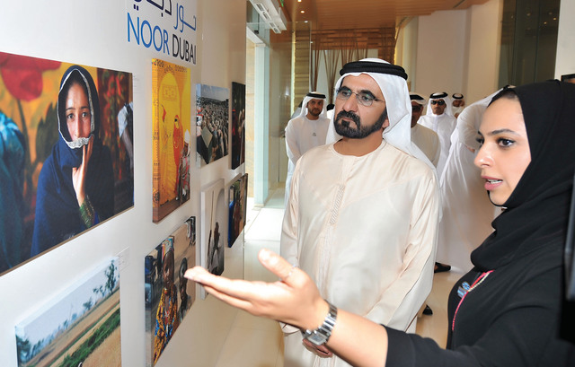 جاء ذلك خلال زيارة صاحب السمو الشيخ محمد بن راشد آل مكتوم بعد ظهر أمس موقع المعرض الفني الخيري الثاني لمؤسسة نور دبي في منطقة برج خليفة بدبي.