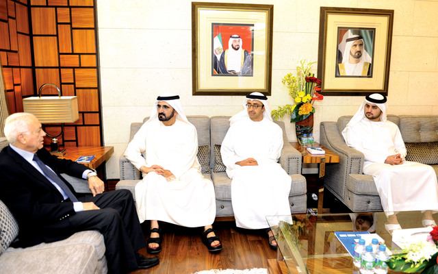 جاء ذلك خلال استقبال صاحب السمو الشيخ محمد بن راشد آل مكتوم نائب رئيس الدولة رئيس مجلس الوزراء حاكم دبي في استراحة سموه في منطقة المرموم، ظهر أمس، الدكتور نبيل العربي أمين عام جامعة الدول العربية الزائر.
