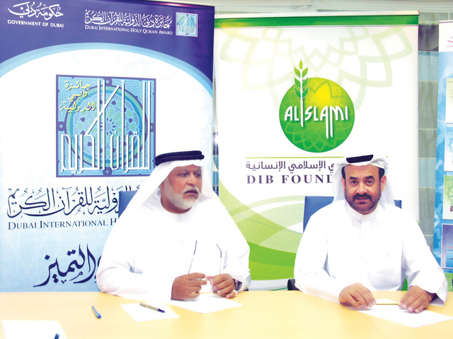 وفي هذا الإطار فقد قامت برعاية جائزة دبي الدولية للقرآن الكريم والتي أسسها ويرعاها صاحب السمو الشيخ محمد بن راشد آل مكتوم نائب رئيس الدولة رئيس مجلس الوزراء حاكم دبي رعاه الله، وهذه الرعاية نعتبرها واجبا دينيا واجتماعيا نقوم به في بنك دبي الإسلامي والمؤسسة حيث تستمر رعايتنا للعام الرابع عشر على التوالي فقد بدأ البنك برعاية فعاليات الجائزة انطلاقا من الدورة الثالثة واستمر يرعاها سنويا بتوجيهات مجلس الإدارة وعلى رأسهم محمد بن إبراهيم الشيباني رئيس مجلس الإدارة والسادة أعضاء مجلس الإدارة وعبدالله الهاملي الرئيس التنفيذي للبنك ونسعد كثيرا برعايتنا لهذه الجائزة التي أصبحت منارة ترسل الضياء والنور في ليالي رمضان المباركة.
