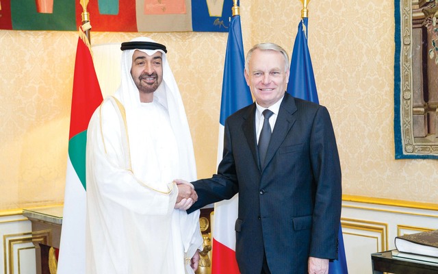 بحث الفريق أول سمو الشيخ محمد بن زايد آل نهيان ولي عهد أبوظبي نائب القائد الأعلى للقوات المسلحة مع رئيس الوزراء الفرنسي جان مارك ايرولت علاقات التعاون بين دولة الإمارات العربية المتحدة و جمهورية فرنسا وسبل تعزيزها في مختلف المجالات تحقيقا للمصالح المشتركة للشعبين والبلدين الصديقين، وقال سمو ولي عهد أبوظبي: "إننا إذ نؤكد أهمية علاقات التعاون الاستراتيجية التي تربط بين الإمارات العربية المتحدة وفرنسا .. لنتطلع إلى مزيد من تطوير أفق هذا التعاون في مختلف المجالات ".