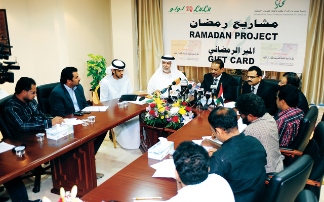 ووقع المستشار إبراهيم بوملحه نائب رئيس مجلس أمناء المؤسسة، في المؤتمر الصحافي الذي عُقد صباح أمس بمقر المؤسسة في منطقة الممزر، مذكرة تفاهم مع يوسف علي رئيس مجموعة متاجر اللولو هايبر ماركت، لتنفيذ مشروع " المير الرمضاني" ويستفيد من هذا المشروع 3250 أسرة بتكلفة إجمالية أكثر من 2 مليون درهم. وقال بوملحه إن مشاريع المؤسسة الرمضانية تأتي بتوجيهات من صاحب السمو الشيخ محمد بن راشد آل مكتوم نائب رئيس الدولة رئيس مجلس الوزراء حاكم دبي، وامتداداً لِما تقوم به المؤسسة من كل عام في شهر رمضان الكريم من أعمال خيرية داخل وخارج الدولة.