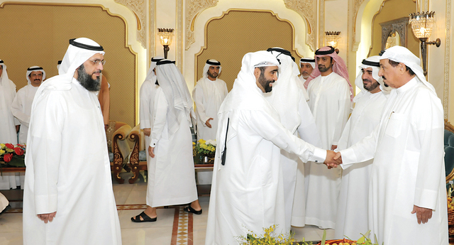تبادل صاحب السمو الشيخ حميد بن راشد النعيمي عضو المجلس الأعلى حاكم عجمان، بحضور سمو الشيخ عمار بن حميد النعيمي ولي عهد عجمان رئيس المجلس التنفيذي لإمارة عجمان، التهاني مع شيوخ وكبار رجال الدولة وأعيان ووجهاء البلاد وأبناء القبائل وكبار المسؤولين والمواطنين وأبناء الجاليات العربية والإسلامية الذين توافدوا على قصر الزاهر الليلة؛ للسلام على سموه وتهنئة سموه بهذه المناسبة المباركة.