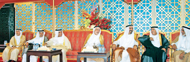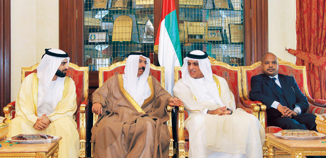 فقد استقبل صاحب السمو حاكم رأس الخيمة معالي محمد أحمد المر رئيس المجلس الوطني الاتحادي ومعالي حميد محمد عبيد القطامي وزير التربية والتعليم وحمد عبد الرحمن المدفع أمين عام شؤون المجلس الأعلى في وزارة شؤون الرئاسة، والفريق سيف عبدالله الشعفار وكيل وزارة الداخلية وعبد الله محمد العثمان سفير دولة قطر الشقيقة عميد السلك الدبلوماسي لدى الدولة والذين قدموا لسموه التهاني والتبريكات بعيد الأضحى المبارك.