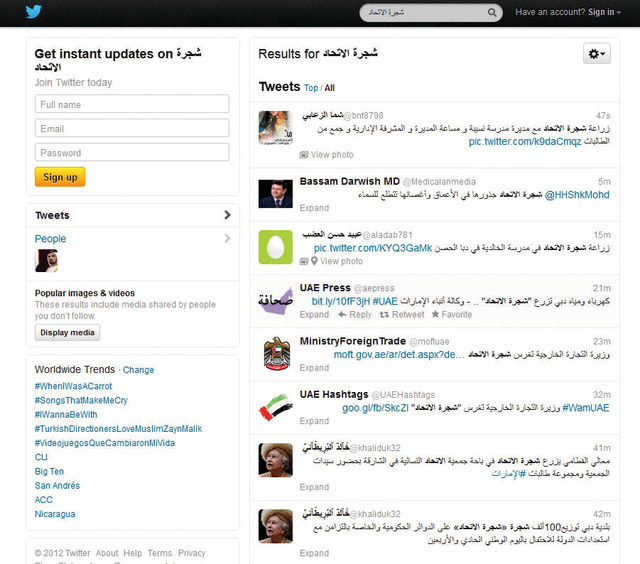 واصل متابعو صاحب السمو الشيخ محمد بن راشد آل مكتوم نائب رئيس الدولة رئيس مجلس الوزراء حاكم دبي، رعاه الله، على صفحة سموه في موقع التواصل الاجتماعي "تويتر"، تفاعلهم مع مبادرة سموه بزراعة "شجرة الاتحاد"، في جميع أرجاء الامارات، مبدين سعادتهم الكبيرة بالمشاركة الواسعة، وتلبيتهم للنداء بالاستجابة لهذه المبادرة الطيبة التي تعزز الولاء للوطن والقيادة، إذ شاركت مختلف فعاليات المجتمع من جهات حكومية وخاصة وأفراد بزراعة الشجرة، وذلك لليوم الرابع على التوالي.