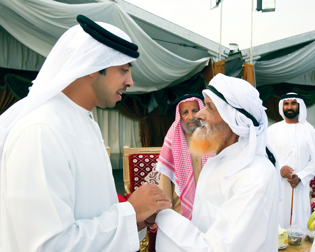 وتبادل سموه وإلى جانبه سمو الشيخ منصور بن زايد آل نهيان التهاني والتبريكات بهذه المناسبة الغالية مع جموع المواطنين من أهالي منطقة سويحان، معربا سموه عن اعتزازه بهذه المشاعر الوطنية.