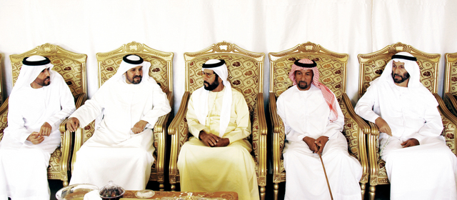 طحنون بن محمد يعزي مبارك الخييليمواساة العين - وامقدم سمو الشيخ طحنون بن محمد آل نهيان، ممثل الحاكم في المنطقة الشرقية، واجب العزاء إلى مبارك بن مغير الخييلي في وفاة ابنه سيف، وذلك مساء أمس في منزل العائلة في منطقة أبو سمرة في مدينة العين.