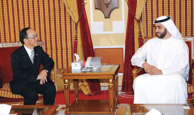 ورحب سمو ولي عهد أم القيوين بسفير اليابان متمنياً له التوفيق والنجاح في مهام عمله بالدولة.