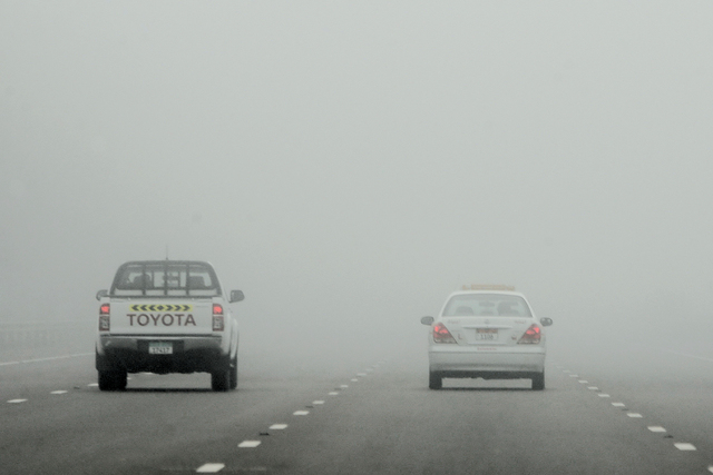 غطى الضباب الكثيف مناطق متفرقة من البلاد في الصباح الباكر من يوم أمس ما أدى إلى تدهور الرؤية الأفقية إلى أقل من 50 مترا في بعض المناطق وشملت مناطق تشكل الضباب طريق أبوظبي ـ دبي وأبوظبي ـ العين ومطار أبوظبي وجبل علي 300 متر والظفرة ومدينة خليفة (أ) وليوا 50 مترا والشارقة 3 آلاف متر اضافة إلى أغلب المناطق الداخلية والوسطى والجنوبية.
