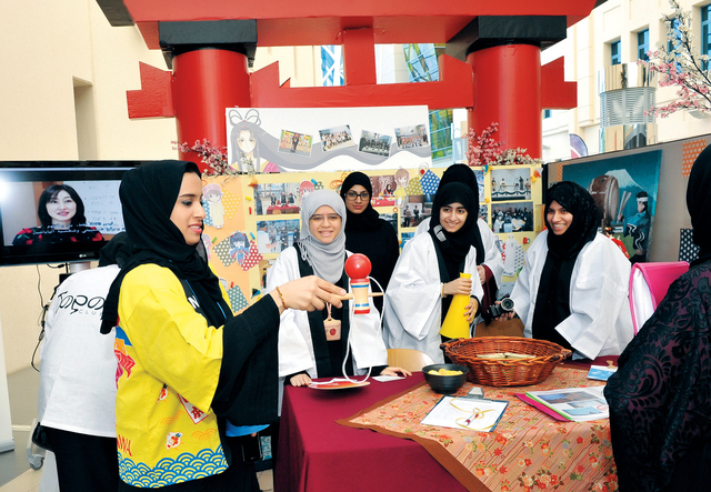 وأقامت الطالبات معارض وفعاليات عدة تحاكي العالم، ورغم هذا الميول الملفت إلى الخارج إلا أن الجناح الإماراتي كان حاضراً وبقوة بين هذه أندية والأنشطة، يعرض ملامح الدولة ومقوماتها السياحية والاقتصادية ونسقها الاجتماعي وسط فعاليات طلابية عالمية، بهدف التعريف عن الهوية الإماراتية والترويج لها من خلال الجماعات الطلابية.