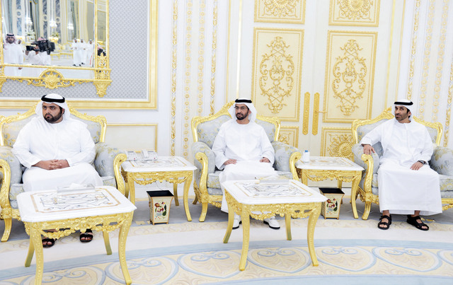 استقبل صاحب السمو الشيخ خليفة بن زايد آل نهيان رئيس الدولة، حفظه الله، أخاه صاحب السمو الشيخ حمد بن محمد الشرقي عضو المجلس الأعلى حاكم الفجيرة يرافقه سمو الشيخ محمد بن حمد بن محمد الشرقي ولي عهد الفجيرة، وذلك بقصر الروضة بمدينة العين ظهر أمس.