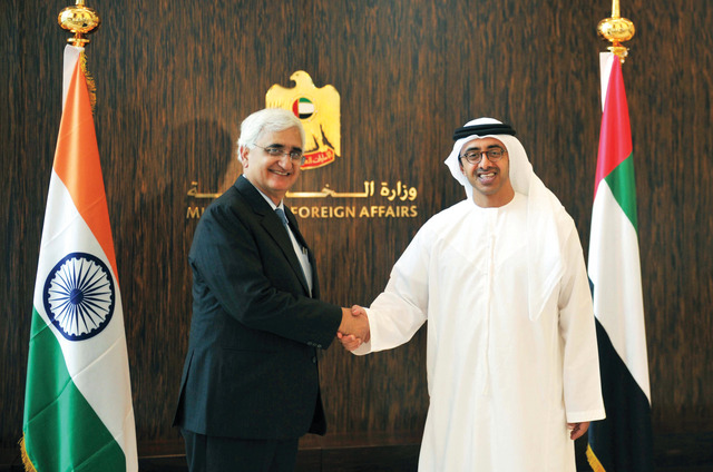 استقبل سمو الشيخ عبدالله بن زايد آل نهيان وزير الخارجية، بمكتبه بديوان عام الوزارة ظهر أمس، سلمان خورشيد وزير خارجية الهند الذي يزور البلاد حاليا. وتم خلال اللقاء استعراض العلاقات الثنائية بين البلدين وسبل تنميتها وتعزيزها في مختلف المجالات بالشكل الذي يرتقي بتطلعات حكومتي البلدين، ويكفل تحقيق المصالح المشتركة للشعبين الصديقين.