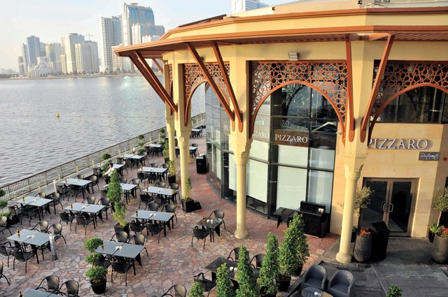 وتضم واجهة المجاز المائية العديد من المرافق الترفيهية المميزة كنافورة الشارقة التي تتضمن عروضاً موسيقية وسينمائية هي الأولى من نوعها في المنطقة، و10 مطاعم ومقاه راقية مثل تي جي آي فرايديز، وكاريبو كوفي، وفات برجر، وكافية دي روما، وبيزارو، وباها فريش، وزهر الليمون، وتيم هورتنز وكولد ستون، والتي تتمتع جميعها بإطلالة مميزة على نافورة الشارقة الملونة الراقصة، ومن خلفها فضاء البحيرة، وحرصت الإدارة على توفير مضمار مخصص لرياضة المشي والجري، وملعب الغولف المصغر، ومساحات خضراء صممت بطرق فنية بديعة.