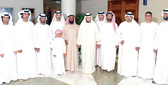 وقدم سموه التهاني والتبريكات إلى العريس ووالده وإخوانه سيف وحمد وسالم وسلطان وأحمد أبناء سعيد يريو المنصوري وإلى والد العروس وإخوانها راشد ومبارك وسلطان وأحمد أبناء محمد مسفر المنصوري وأقاربهم، متمنيا أن يكلل الله حياة العروسين بالرفاه والذرية الصالحة.