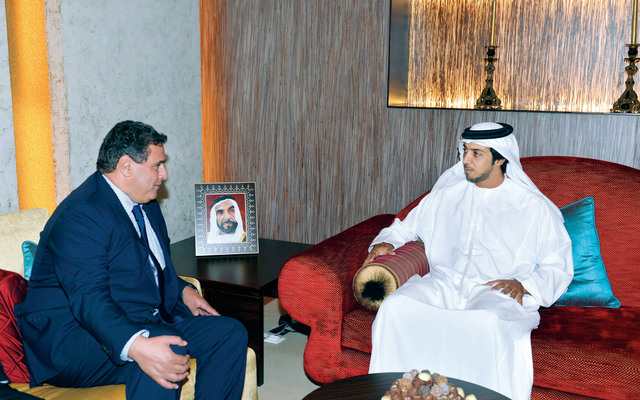 استقبل سمو الشيخ منصور بن زايد آل نهيان نائب رئيس مجلس الوزراء وزير شؤون الرئاسة، أمس، عزيز آخنوش وزير الفلاحة والصيد البحري في المملكة المغربية الشقيقة، تم خلال اللقاء، بحث تطوير وتعزيز العلاقات الثنائية بين البلدين، والارتقاء بها إلى مجالات أوسع، واستعراض برامج التنمية المستدامة، والتعاون المشترك لما فيه الخير للبلدين الشقيقين. حضر اللقاء راشد الشريقي مدير عام جهاز أبو ظبي للرقابة الغذائية، ومحمد آيت وعلي سفير المملكة المغربية لدى الدولة.