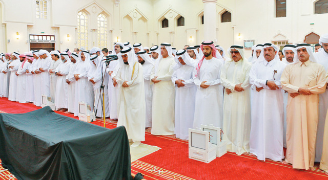 وأدى الصلاة إلى جانب سموهما في جامع الشيخ زايد في مدينة رأس الخيمة الشيخ حمد بن محمد القاسمي رئيس دائرة الأراضي والأملاك والشيخ عبدالملك بن كايد القاسمي المستشار الخاص لصاحب السمو حاكم رأس الخيمة والشيخ أحمد بن حميد القاسمي رئيس مجلس إدارة شركة رأس الخيمة لصناعة الأسمنت الأبيض والشيخ حميد بن عبدالله القاسمي والشيخ عمر بن عبدالله القاسمي والشيخ ماجد بن سلطان بن صقر القاسمي والشيخ راشد بن حميد القاسمي والشيخ صقر بن خالد بن حميد القاسمي رئيس مجلس إدارة مؤسسة رأس الخيمة للقرآن الكريم وعلومه والشيخ سعود بن خالد بن حميد القاسمي والشيخ فيصل بن حميد القاسمي رئيس الاتحاد العربي للدراجات والشيخ فاهم بن عبدالله القاسمي.