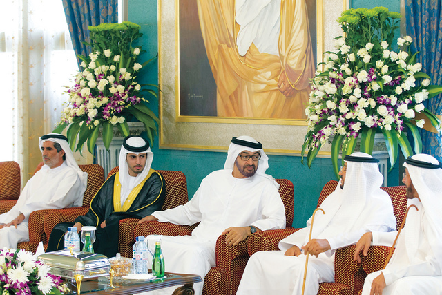 حضر الفريق أول سمو الشيخ محمد بن زايد آل نهيان ولي عهد أبوظبي نائب القائد الأعلى للقوات المسلحة، أمس، في نادي ضباط القوات المسلحة بأبوظبي، الحفل الذي أقامه عبيد بن غنام المزروعي، بمناسبة زفاف نجله غنام إلى كريمة محمد بن سيف المزروعي.