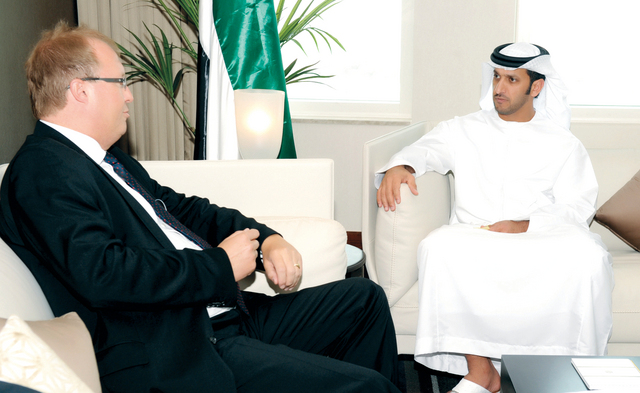 استقبل عبدالله بن محمد بن بطي آل حامد وكيل وزارة الخارجية في مكتبه في ديوان عام الوزارة، نيكولاي فون شويف سفير جمهورية ألمانيا الاتحادية لدى الدولة.