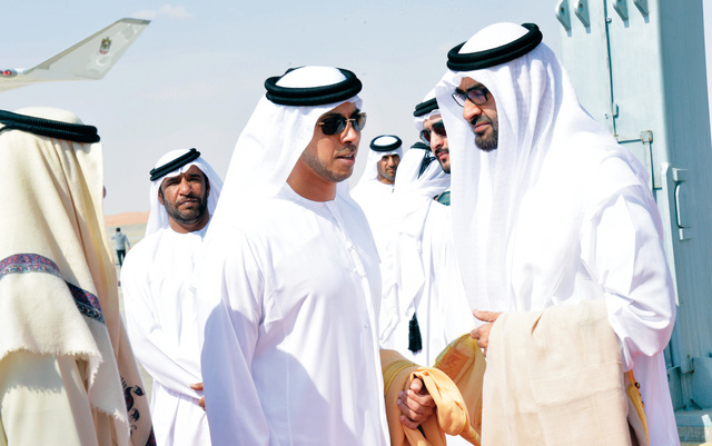 ومعالي اللواء الركن طيار الشيخ أحمد بن طحنون بن محمد آل نهيان، ومعالي أحمد جمعة الزعابي نائب وزير شؤون الرئاسة، ومعالي الفريق مصبح بن راشد الفتان مدير مكتب صاحب السمو نائب رئيس الدولة رئيس مجلس الوزراء حاكم دبي، وعدد من الشيوخ وكبار المسؤولين في الدولة.