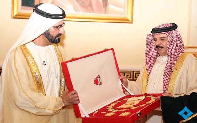 قلد جلالة الملك حمد بن عيسى آل خليفة ملك مملكة البحرين الشقيقة..صاحب السمو الشيخ محمد بن راشد آل مكتوم نائب رئيس الدولة رئيس مجلس الوزراء حاكم دبي رعاه الله وسام الشيخ عيسى بن سلمان آل خليفة من الدرجة الممتازة.