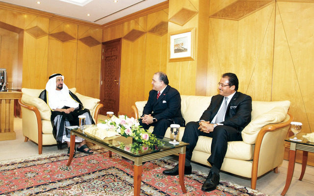 استقبل صاحب السمو الشيخ الدكتور سلطان بن محمد القاسمي، عضو المجلس الأعلى حاكم الشارقة رئيس الجامعة الأميركية في الشارقة، ظهر أمس بمكتب سموه في مقر الجامعة، عمدة مدينة فريسكو بولاية تكساس في الولايات المتحدة الأميركية ماهر ماسو والوفد المرافق له، ورحب صاحب السمو حاكم الشارقة في مستهل اللقاء بضيوف الإمارة، وتبادل سموه الأحاديث الودية معهم ومناقشة عدد من المواضيع ذات الاهتمام المشترك في المجالات الاقتصادية والاستثمارية.